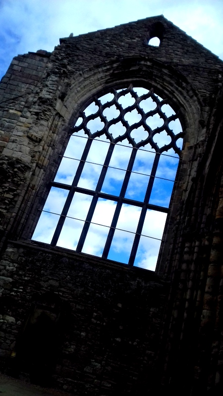 Je découvre ainsi ses minuscules appartements, recroquevillés dans la tour Nord, témoins des meurtres et des amours de la reine. J’imagine, aidée par la peinture de William Allan que j’ai découvert à la National Gallery of Scotland, David Rizzio assassiné sous les yeux de sa protectrice enceinte et éprouvée, par le mari lâche et jaloux qui voulait être roi à la place du roi. Le tableau a donné de la grandeur tragique à cet acte injuste ; coincée à l’entrée de la minuscule pièce ronde, une réalité plus sordide me parvient : Mary n’a pas été épargnée, ni du sang, ni des cris, ni de la chair. Je deviens moi-même spectatrice d’un drame que je n’ai pas vécu et imagine la petite alcôve surpeuplée au moment des coups de poignard, David s’accrochant, sanguinolent, aux robes de la reine. Mary sent l’odeur du sang, elle tient contre son cœur les derniers souffles de vie de son ami agonisant, elle est à la portée de n’importe quelle lame qui peut ne pas lui être destinée. Je quitte alors la chambre de Mary et mon imagination trop palpable, j’emprunte les mêmes escaliers que le mari traître qui me conduisent à l’abbaye. Je contemple la mélancolie des ruines à ciel ouvert, se dressant tout à côté de la tour funeste de la reine.