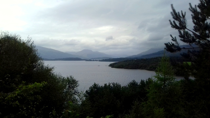 Mon parcours écossais se dépose sur la rive orientale du Loch Lomond, à Balmaha. La pluie est légère, l’air est plus doux mais le vert toujours bien enivrant. Je grimpe sur Conic Hill, les pieds blessés et le cœur un peu endolori aussi, pour voir le loch d’en haut. Je traverse ma première forêt, un petit bout de Trossachs, avant d’atteindre le sommet. C’est une ballade plus éprouvante que prévue pour mes chaussures sanguinolentes. Mais que le vent est beau au plus près des nuages, que le violet de la bruyère se mélange harmonieusement au gris de l’eau, au vert de la pluie, au noir de la roche.
