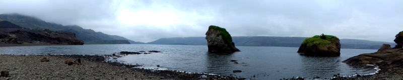 Au sud de Reykjavik, la péninsule est pour n’importe quel voyageur arrivé par les airs, la première vison que l’on a de l’Islande. En ce quatrième jour, toujours sous la houlette de Mister Waterfall, je m’occupe de la découvrir plus précisément en marquant un premier arrêt au lac de Kleifarvtn, aux alentours duquel on peut trouver un bain de boue – formellement interdit de s’y baigner évidemment – (un petit chemin de terre sur la gauche après le lac) et sur lequel je rencontre un rocher qui ressemble étrangement à une tête d’Amérindien avec sa coiffe de chef. En chemin sur les falaises de Krisuvikurberg, je peux voir s’élever les vapeurs de Krýsuvík sans m’y arrêter, et celles de Gunnuhver qui me racontent la légende du fantôme Gudrun Onundardottir surnommé Gunna, cruel vengeur de son propriétaire après avoir été expulsé de son logis. Puis, j’explore un morceau de terre étrange qui s’élève au-dessus de l’océan et menace de s’effondrer sur les rives de Valahnúkamöl, avant de faire un pont entre l’Amérique et l’Europe à Miðlína et de jeter un dernier coup d’œil sur l’immensité des champs de lave du haut du cratère de Stampar.