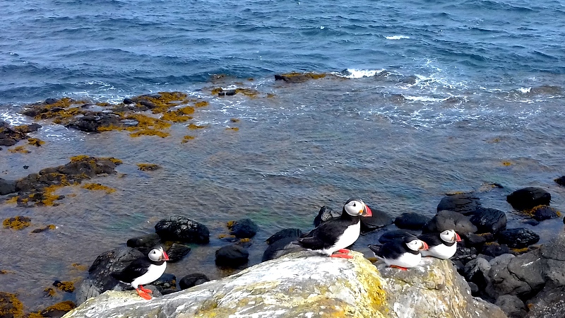 Au petit matin frais, je prends le bateau, Cap sur Flatey Island. Cette île minuscule, dont le nom fait référence à son terrain plat qui détone parmi les éminences volcaniques islandaises est une réserve d’oiseaux (mignons macareux, très élégants mais plutôt agressifs sternes arctiques…) où les petites maisons colorées nous parlent d’un autre temps. On peut en faire le tour en une journée – aucun paysage spectaculaire ni geyser de lave, juste une agréable balade ventée aux cris des mouettes – et reprendre le bateau en milieu d’après-midi, soit pour s’avancer vers les Fjords, soit pour revenir d’où l’on vient. Je préfère y passer la nuit, il y a un camping gratuit (toilettes et prises électriques mais pas de douche) afin d’apprécier une petite pause hors du temps et du monde.