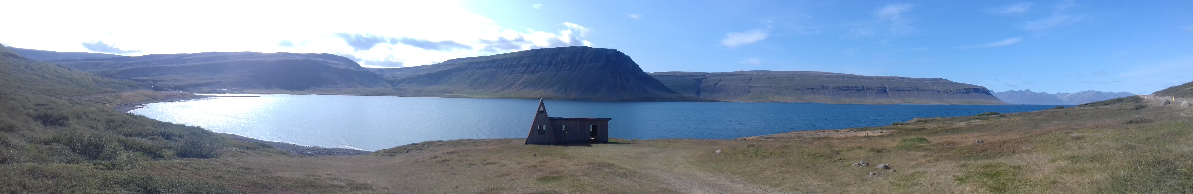 Au deuxième petit matin, je reprends donc le bateau direction Brjanslaekur. De là, n’étant pas très loin de la source chaude presque naturelle d’Hellalaug (le cadre est naturel, magnifique vue sur l’océan, mais a été aménagé par quelqu’un du coin), je décide de marcher pour rejoindre ce petit bout de paradis. C’est une ballade d’une bonne heure (6 kms), on peut presque toujours longer la mer sur un petit sentier parallèle à la route, quand ce n’est plus possible parce qu’on ne distingue plus le tracé, il suffit de retourner en bord de route pour avoir une vision d’ensemble. Attention ! Il y a deux Hellalaug sur Google map, dont l’un qui est en fait une petite maison, c’est celui-ci qu’il faut choisir : « Hellalaug, Vestfjarðarvegur, Flókalundur, Islande ».
