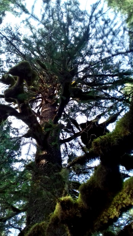 Le sentier infini sans arbre parce que le vent, me ramène à l’orée d’une autre forêt. Les bruits changent, l’on entend que le chant des oiseaux du soir, si doux comparé au souvenir criard des oiseaux de Flatey Island. Et le soleil se couche derrière la montagne, entre les branches moussues et le gui des arbres tortueux. La nuit n’est pas encore là, le chemin est sans fin. Je pense au Mont Rainier dont les couleurs multiples ressemblaient par endroits au lac perdu. La nuit se fait bleu clair, mes pieds n’ont plus la force de s’émerveiller du paysage, j’attends le prochain croisement, la prochaine route en goudron qui me voyagera enfin jusqu’à mon lit.