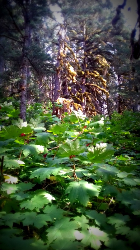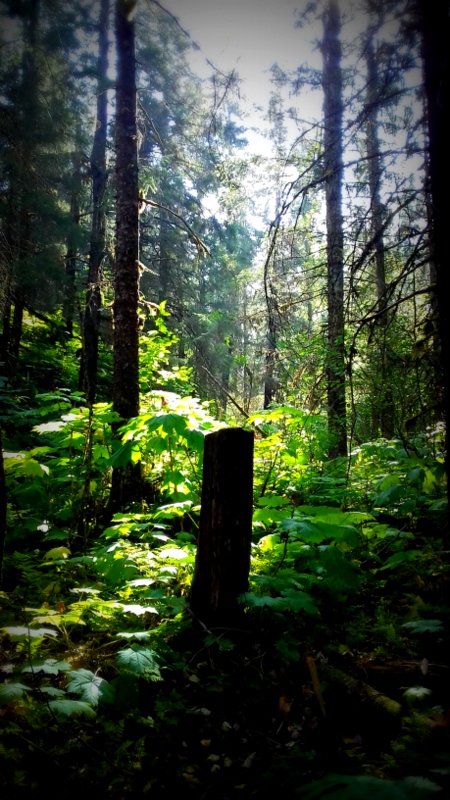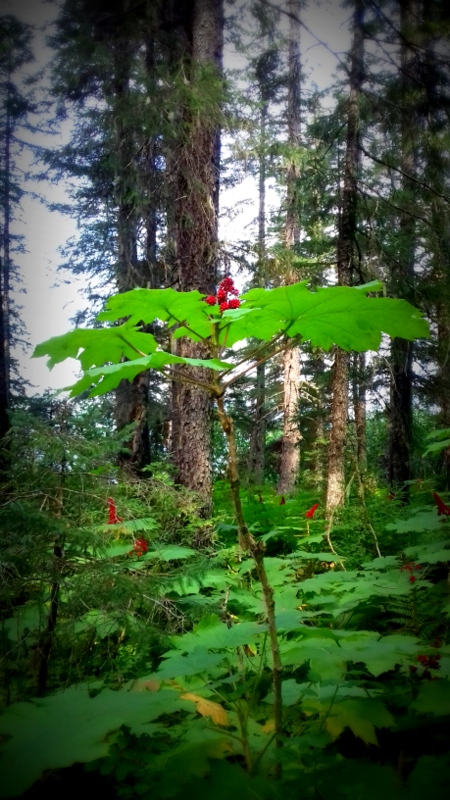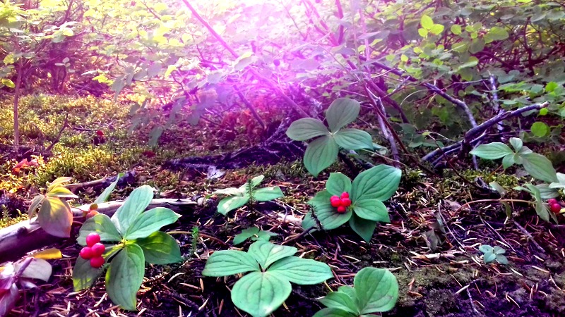 Le dimanche sera finalement ma belle marche solitaire, au vol de l’unique hydravion, à l’odeur pestilentielle des saumons morts sur les rives du lac aux ours. Et dire qu’il y a une semaine, ils flânaient leur dernière heure et qu’à présent, ils pourrissent dans tous les cours d’eau… C’est bien ma preuve que l’automne approche, même si l’air de l’après-midi est encore si doux. Je me laisse enchantée encore une fois par le rouge de l’aralie épineuse en telle harmonie avec le vert de la forêt, je me laisse surprendre par le rouge des rouges-gorges que j’effraie sans le vouloir au creux de l’arbre déraciné. J’aime le soleil si particulier de mes seules heures possible de randonnée, où les rayons percent si bas, doux et magnifiques comme une liberté.