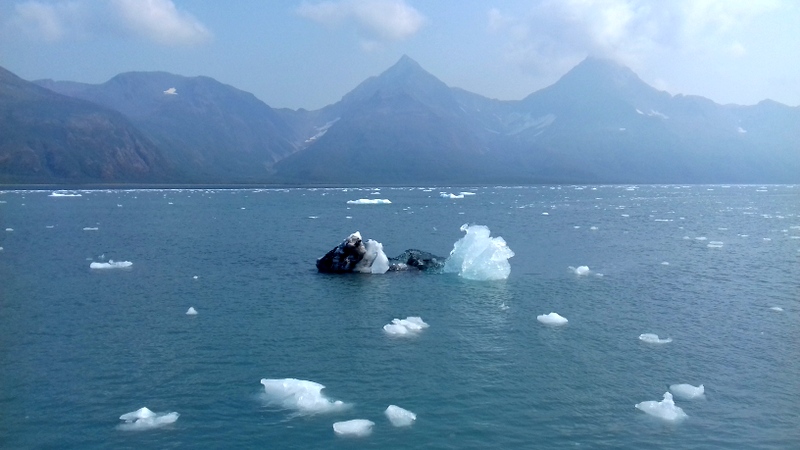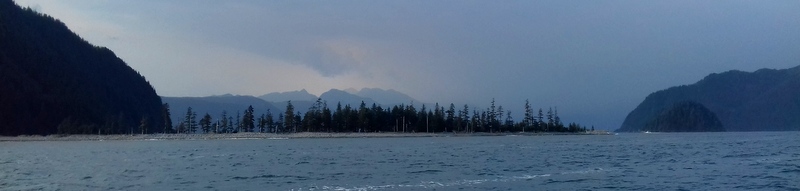 Dans cet autre matin, où l’air d’Alaska a repris sa fraîcheur, où la brume de fumée demeure, je me rends au cœur de l’océan, ou au moins d’un morceau, pour aller pêcher du poisson en haute mer et espérer quelques baleines. En chemin, Resurrection Bay s’ouvre à moi, déroulant ses monts peut-être glaciers, couverts de sapins en descendant vers le sel. Je les regarde, émerveillée et sans tanguer, courir à mes côtés dans le matin grisé. Le soleil tente de trouver sa place, délavé par la fumée, et s’entrechoque aux rayons de la montagne. J’ai abandonné mon carnet de voyage pour quelques jours et j’espère que ce début de traversée me permettra d’entrelacer les paysages de mes yeux vers mon stylo. Cependant, lorsque la barrière du Fjord est dépassée, mon premier macareux alaskien rencontré, la mer se fait vraiment sentir de sa danse cahoteuse avec le maigre bateau et m’empêche de continuer les récits de mon chemin fatigué. Je ne peux que me concentrer sur ma vie fragile qui tente d’éructer par ma bouche… Je suis en mode étoile de mer sur la banquette pour survivre à l’océan ; je somnole, rêve à d’autres vies, sens mon corps courbaturé de ma longue marche d’hier user de ses dernières ressources pour me maintenir en vie.