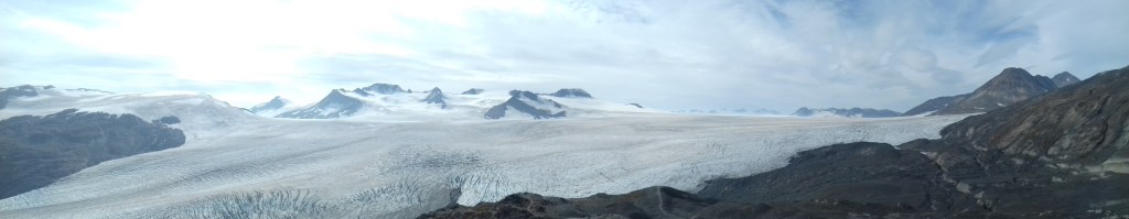 C’est mon dernier jour à Seward, je suis censée passer la nuit à Talkeetna mais la fumée de forêt a été si capricieuse pendant la semaine que le glacier à randonner m’a été refusé. Négociant avec mon co-voitureur australien un départ retardé pour une randonnée en commun, nous partons au petit matin pour prendre de l’altitude et voir les ères glacières, alors que la terre encore froide a ses vapeurs du premier rayon de chaleurs qui envahit la vallée. Une maman et ses deux oursons sont apparemment dans les parages mais à deux, nous n’avons peur de rien. Nous nous élevons et la journée se remplit de nos théories maladroites et naïves sur la vie.