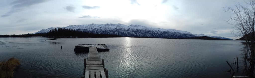 Mes vagabondages de pensée et de distance s’achèvent dans le bleu presque lagon de Destruction Bay – destruction, quel nom étrange pour une baie d’un bleu si irréel presque magique – quand l’heure de la nuit s’invite de son crépuscule…