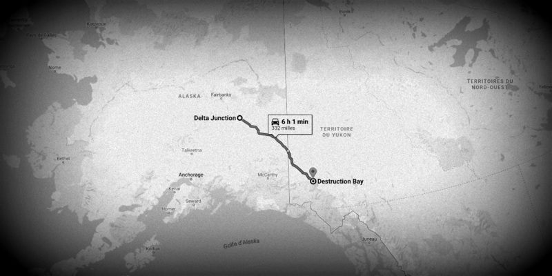 Une fois la douane américaine dépassée et avant les vingt plus longs kilomètres d’un troublant no man’s land que j’ai jamais eus à traverser avant le poste de frontière canadien, j’ai le cœur si lourd de quitter l’Alaska, il se sert comme une enclume. Seule l’Irlande n’a jamais cristallisé les mêmes océans de départ dans mon âme. C’est étrange combien certains contrées nous émeuvent plus particulièrement sans que nous n’y trouvions de raison. Pourquoi ce sel ? Pourquoi cet attachement si particulier ? Est-ce Hannah ? Est-ce l’idée de toutes les vies que je me suis inventées ici ? Pourquoi ce sel alors que je suis pourtant si fébrile de continuer mes explorations ?