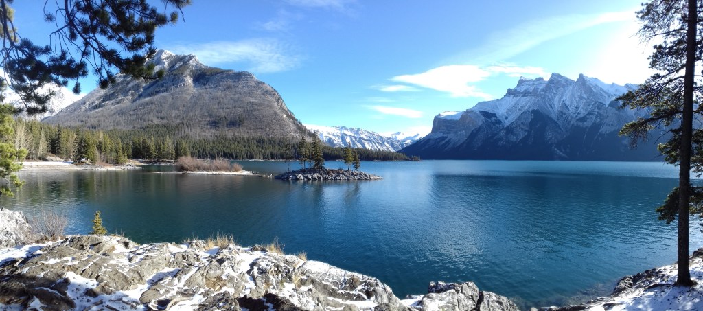Je suis encore un peu les pas de mon amie Caroline, regardant d’en bas les chutes d’eau de Bow et d’en haut ces étranges maisons de fées fabriqués par les ères glaciaires, à qui l’on a donné ce nom tout aussi étrange : Hoodos. Mais ça n’est pas suffisant pour me dégourdir les yeux, alors je poursuis jusqu’au Lac Minnewanka pour traverser Stewart Canyon. Je longe les rives du lac, subjuguée par le grand soleil du matin dans les montagnes si plurielles qui l’encadrent. Je marche entre les arbres, écoutant le lac se glacer. Car le gel de l’eau fait un bruit particulier, surtout lorsque l’onde immobile continue à se cogner au film de la glace. J’aborde finalement le canyon qui fait son eau rebelle et toujours en mouvement au fur et à mesure qu’elle remonte vers la terre. Je marche et rêve de mon demain qui dessine de nouveaux contours, peut-être canadiens.