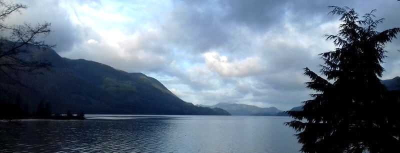 Une surprise qui clôture les nouveautés du jour. Après cela, je déroule la route déjà empruntée qui se livre si différente d’hier. Nimpkish Lake, fascinant bijou à ma fenêtre, ne s’offre qu’à demi entre les arbres qui me bouchent la vue, sous sa couche de brouillard, souvent (sauve)gardé par des montagnes protectrices. Les geais bleus égrainent mes vagabondages, entrecroisant ma route de leur envolée magique. Les paysages sont si beaux, insaisissables. Inoubliables. Indicibles. Une simple et douce onde de bonheur dans le cœur.