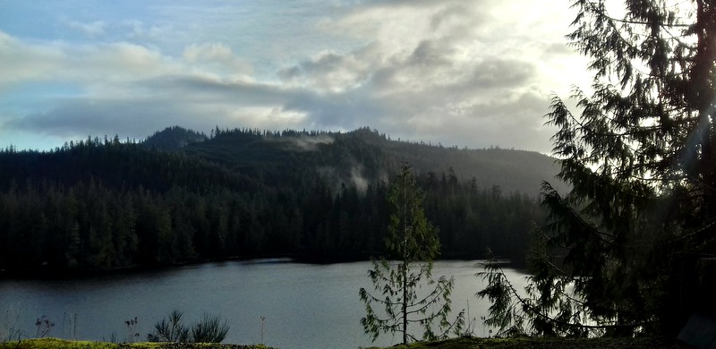Je suis fin prête à prendre à rebours le trajet de la veille, déjà vu et pourtant déjà changé. Dans un élan intuitif, je fais néanmoins un détour par Port Alice qui, s’il me dissimule la boucle du lac Victoria à cause d’une étrange usine aux airs abandonnés sur le chemin, est absolument magnifique. La brume du matin embrasse une dernière fois la pluie d’hier. Le soleil doux diffusé par les voiles nuageux en rase motte sur l’eau s’imprime du vert indescriptible de chaque centimètre. Les monts s’entrelacent et ouvrent de fins couloirs pour l’océan venu des infinités du monde. Les bouleaux recouverts de mousse accueillent l’envol du geai bleu majestueux. Je les avais oubliés et soudain, ils sont tous là à chanter autour de moi. Ils viennent ajouter leur propre couleur à ce tableau déjà grandiose. Ils me racontent mon Amérique.