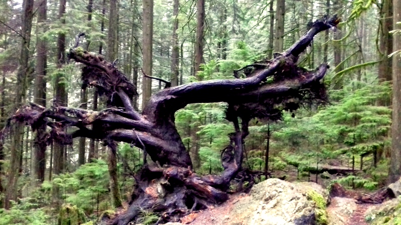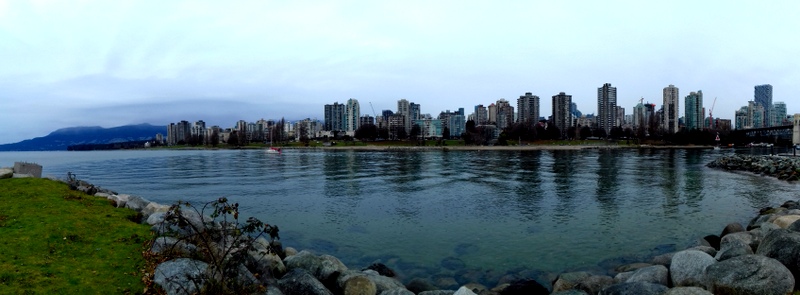 J’ai souvent pensé que nous n’avions pas suffisamment de mots pour la pluie, surtout quand on sait que Vancouver était une forêt de pluie. Il y a la pluie tambourinante, la pluie chuchotante, la pluie qui vous tire vers le sommeil et celle qui nous réveil en chantant ; il y la douce pluie et la pluie dure, la pluie de travers, la pluie qui vous inonde, et la pluie qui se dépose comme un doux baiser sur vos joues aussi légère que les ailes d’un papillon.La pluie nous apporte toutes les nuances de gris, mais elle nous apporte aussi le magnifique panorama vert qui nous entoure et nous bénit.