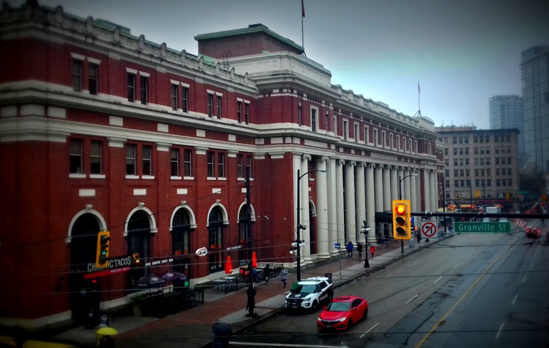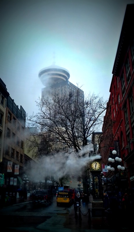 Pour mon deuxième jour à Vancouver, le matin prend son temps, rattrapé par l’heure française, démotivé par la pluie vertigineuse des nuages à présent coincés entre les montagnes environnantes. Une fois que j’accepte le rythme mouillée de ma balade, je commence un cache-cache voiture enjoué. C’est maintenant lundi et le stationnement en ville nécessite une organisation au ciseau et de véritables tours de passe-passe. Je m’élance dans les quartiers historiques : Chinatown et Gastown. La Chine pourquoi pas mais Victoria était plus mystérieuse, Victoria était plus joueuse. Cependant, Victoria n’avait pas cet arbre silencieux sur lequel les chouettes et hiboux faisaient du plein jour leur nuit de repos. Gastown, nommé après le marin écossais Gassy Jack, l’un des premiers colons de ce quartier ; quel coup de foudre le long de ces bâtiments rouges de manufactures d’un autre siècle. Je ne voyage pas le temps, je ne m’invente pas des histoires, et pourtant, leurs fantômes battent le pavé à côté de mes pas. Les fantômes de ceux qui ont commencé la ville occidentale entre ses rues.