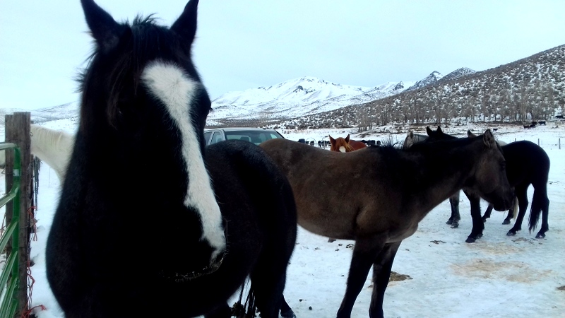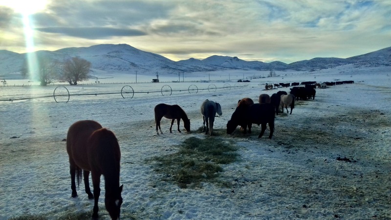 Les Mecham sont arrivés à Carey dans les années 1920, comme beaucoup de mormons, ils ont migré depuis leur terre promise d’Utah vers l’Idaho. Les Mecham sont si bien implantés dans le coin que la route mi verglacée, mi enneigée qui mène à la propriété d’origine, « The Home Place« , s’appelle Mecham Road. Aujourd’hui partagée en deux, entre Rick et l’un de ses frères, elle est l’un des trois ranchs de Rick et Stacey. Les rayons de soleil s’y teinte de bleu entre les bottes de foin et les grands arbres dénudés, éclairant les vallons enneigés en arrière plan.
