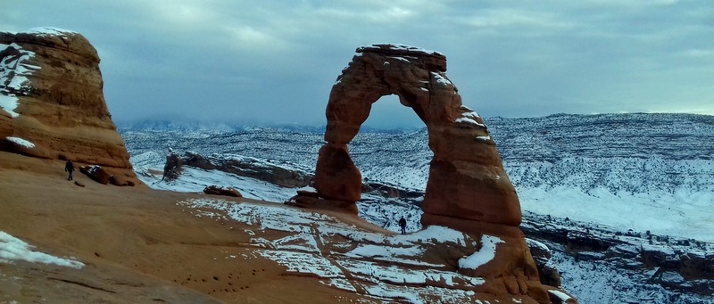 Et quand je prends mes jambes à mon cou pour escalader l’arche la plus délicate, c’est une émotion indescriptible. On a beau avoir vu les photos, on n’est pas préparé. On ne sait pas que ce sera si immense, à perte de vue, si paisible et silencieux. Je n’avais pas vraiment d’attente, j’étais déjà parfaitement heureuse de la terre rouge et des sculptures si particulières. J’étais comblée de ce cadeau précieux et rare, de ce désert rouge de plein hiver. Mais je reste là, perchée sous l’arche sur le vide, pendant des minutes infinies, savourant le silence du désert uniquement brisé par le vol croassant du corbeau, prenant la mesure du tournant que ma vie est en train de prendre. Je suis transformée aujourd’hui car je réalise mon rêve.