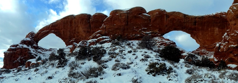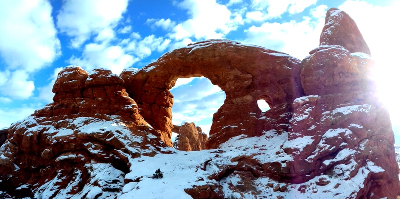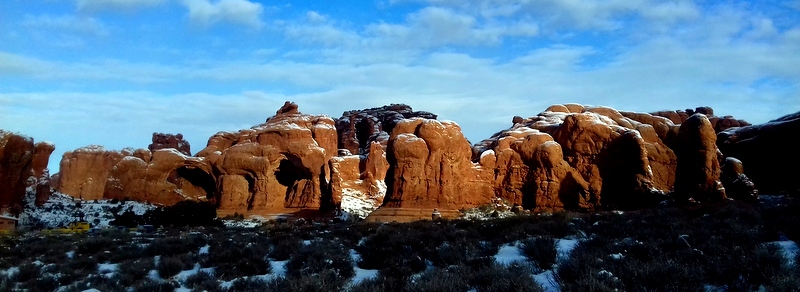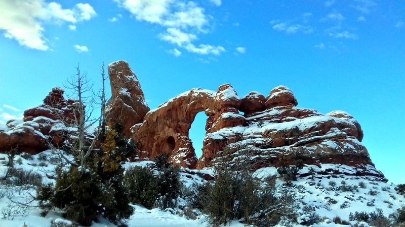 Portée par cette invincibilité, je vole presque au-dessus des hauts plateaux rouges qui se craquellent de canyons. Immenses, partout, presque en forme de sculptures. Époustouflée qu’un côté soit couvert de neige et que l’autre reste rouge. Ardent et immortel. Et je finis par atteindre les Arches, le parc si bien nommé.