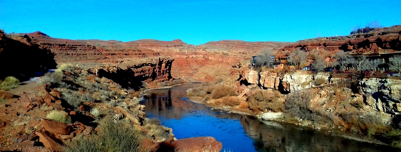 Le lendemain matin – ô ce matin – je retrouve la route 89 qui a déjà ébloui tant de mes errements du Nord vers le Sud, que j’ai dû quitter un peu avant Salt Lake City et qui poursuit aujourd’hui les méandres de la Colorado River, les creux et les contours qu’elle a creusé jusqu’au cœur de la terre, en route vers son plus grand canyon. Je pense que je l’apercevrai tout du long mais je perds de l’altitude trop tôt et le fleuve s’invisible à mes côtés.