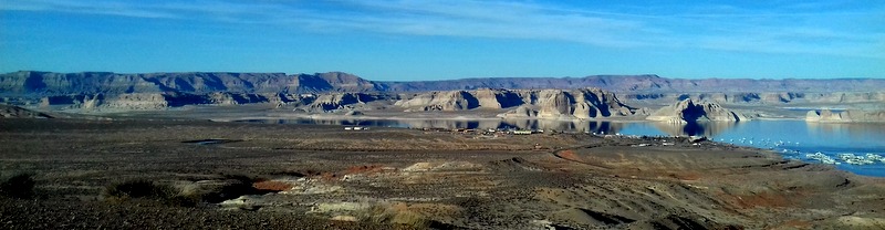 De même, le lac Powell était si prometteur hier, de son eau bleue dans les crevasses rouges, de son entourage émerveillé. Cette fois-ci, le processus a marché à l’envers : c’est d’abord la voiture qui a dérapé, puis le paysage a fini de me trahir… Le canyon est fermé de haut en bas, réservé aux visites guidées de toute façon. Ainsi, j’ai fait ce détour pour rien ?!