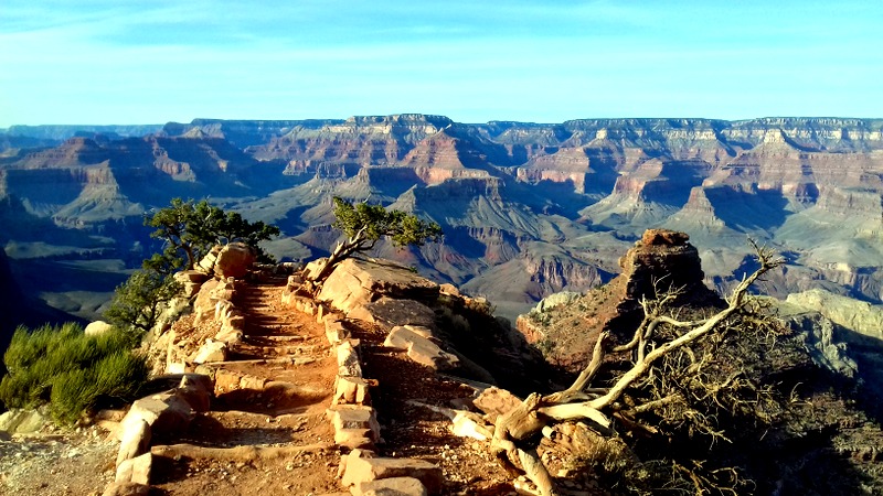 C’est tout de même incroyable de penser à l’effet que le Grand Canyon, ou n’importe quel paysage américain à vrai dire, provoque en nous alors que, dans ce monde hyper connecté, nous l’avons presque tous vu au moins une fois en photo. On est absolument subjugué. Je n’ose alors imaginer la réaction des premiers Hommes et des premiers Européens qui n’avaient jamais vu de pareilles beautés il y a des siècles, il y a des millénaires ! Je comprendrais presque que l’on est massacré tant de vies pour cette terre, car elle vaut mille fois le coup de se battre pour elle. L’Amérique a fait couler le sang, elle a déchiré les cœurs ; elle était la plus cruelle des amantes. Insaisissable. Immense. Elle ne se donnait à personne, elle s’offrait à tous. Et tous s’entre-déchiraient pour la caresser, pour la posséder, pour la faire leur, pour l’adorer follement, pour l’aimer sans raison ni barrière.