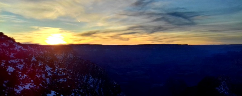 Debout au milieu d’inconnus, je regarde le soleil colorer une dernière fois le canyon avant de rougir comme une amoureuse. C’est tellement étrange, nous nous tenons là, internationaux et muets, tendus vers le même regard. Incapables de communier ensemble cependant.