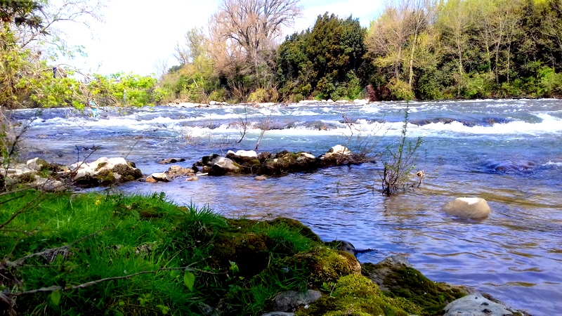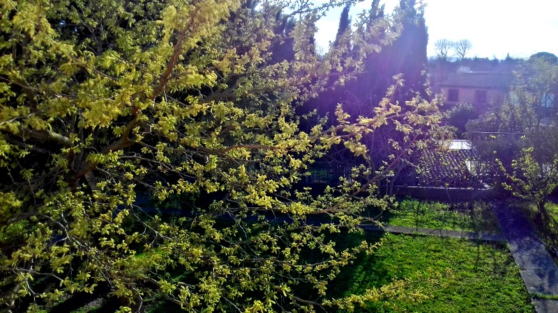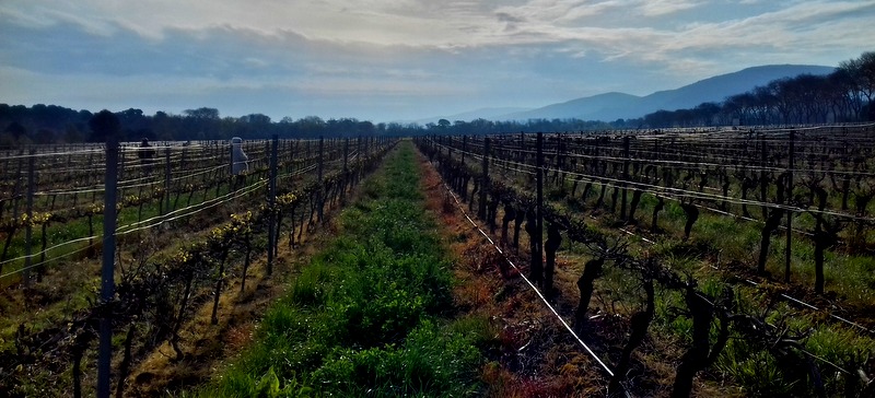C’est une telle bouffée d’air frais. Je regarde les couleurs de la nature qui s’habille petit à petit de printemps, déposant mon spaghetti rouge un cep sur deux pour éviter que les vignes confondent qui elles sont. J’aime ce moyen de continuer de voyager chez moi. Mon corps retrouve en un instant le mouvement familier du voyage et de l’imagination, même s’il ne rêve pas bien loin. Ma flamme s’illumine à nouveau, mon esprit irradie de tout ce que j’écrirai en rentrant, comme si souvent lorsque mon corps ouvrage en pleine nature. Ca me rappelle la cidrerie de Vancouver Island, allégée par les rires facétieux de Lola…