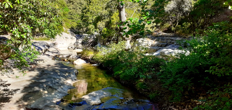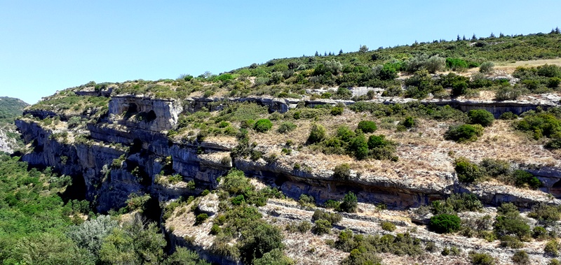 J’ai ainsi entrepris, dans la fraîcheur déjà caniculaire du matin, cette échappée entre les canyons boisés. Et je me suis en fait évadée bien plus loin que dans les recoins cathares, je suis partie jusqu’en Amérique, je me suis envolée jusque dans le Colorado. Ces gorges verdoyantes m’ont en effet rappelé la Mesa Verde (moins la neige) dans laquelle la vie se cachait depuis plus de mille ans entre les falaises et les canyons. Ici point de troglodyte mais les gorges auraient pu être un parfait refuge. Voyez plutôt, je vous mets au défi de me dire qui est quoi :