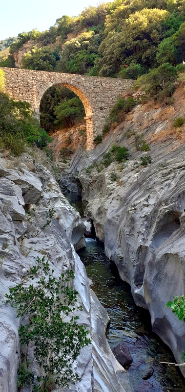 Par un dimanche de juillet un peu échaudé, j’ai souhaité – accompagnée de mon guide cathare préféré et de sa princesse ténébreuse – de me reconnecter à mes sensations de voyage bien aimées en allant explorer l’inconnu voisin. Je n’ai rien décidé, je me suis simplement laissée porter par le savoir du Grand Sage du terroir si prompt à me partager son pays. Et pour ma première escapade cathare, je me suis rendue à Minerve, à la frontière de l’Hérault et de l’Aude, ourlée de la Cesse et du Brian, surmontée de vignobles, creusée au cœur du Parc Naturel régional de Haut Languedoc.