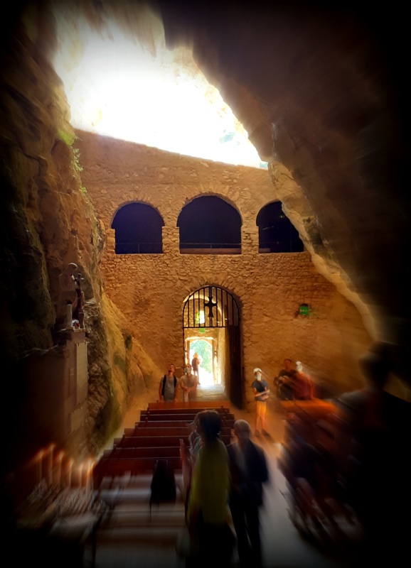 Mais fi de tous ces dogmes ! Pourquoi ce lieu possède-il véritablement un attrait énigmatique ? Car, encore une fois, la figure emblématique de Marie-Madeleine l’oubliée, celle qui est encore aujourd’hui la secrète patronne de Rennes le Château, protège les parois spirituels de cet antre alors qu’elle est la première à nous accueillir aux côtés de la Vierge Marie près d’une source à baptême.
