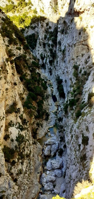 Ce serait un peu dommage de s’en contenter mais comme premier regard, c’est déjà absolument incroyable de parfois recevoir un éclat de l’eau scintillante et claire dans son rétroviseur, de suivre les méandres de la roche à sa fenêtre, tout en se préservant (à tort) de l’immense sensation de vertige qu’offre la marche à pied.