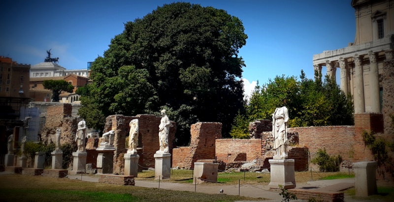 Je pénètre alors par une absence de porte dérobée la casa delle Vestali et je suis assaillie par les nymphes de mon imagination. Elles s’échappent pour se plonger dans les eaux claires de la Fontaine de Trevi pendant que les prières des Vestales s’entrelacent aux colonnes invisibles de mon cloître inventé.