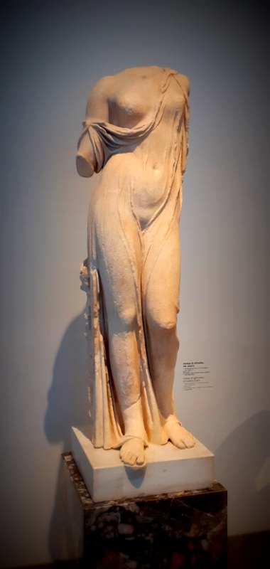 Vénus qui s’appelait encore Aphrodite ne danse pas parmi les Vestales qui l’honorent néanmoins, elle s’est retirée dans son temple de glace, dans sa tour d’ivoire. A l’abri du soleil et du temps, envahie par l’air climatisé, Aphrodite ne distille plus ses potions d’amour, Vénus ne veille plus les encens de son temple écroulé. Aphrodite ne torture plus Pandore de douloureux désirs qui brisent les membres, Vénus ne croque plus les cœurs de Vulcain, Mars, Mercure, Bacchus, Neptune, Anchise et Adonis réunis. Aphrodite, ou bien est-ce Vénus, se tient fièrement sur sa stèle et le marbre de son drapé prédestine à l’adoration pour l’éternité. Et le marbre de son drapé fait danser les Vestales immobiles dans leur jardin à jamais.