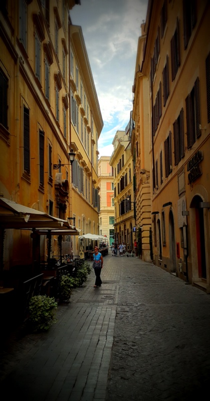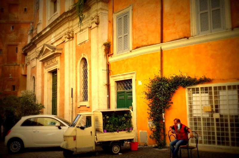 Tant mieux, car je me plais de plus en plus à me laisser déambuler par les méandres étroites du centre ombragé. Frôlée par l’ocre des façades verdoyantes. Glissée par le pavement ténébreux et lisse. Suspendue sur la mousse de mon cappuccino. J’observe Rome vivre au fil des siècles. J’admire les Romains être maîtres insouciants de leur ville éternelle.