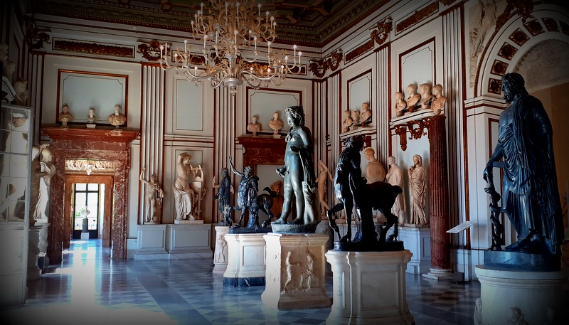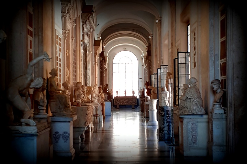 Depuis quelques jours, dans une tentative – vaine, puisqu’il me faut aller masquée de toute façon – d’échapper à la chaleur, je me réfugie dans la fraîcheur marbrée des musées. Ou devrais-je les appeler Palais ? Car ce sont de véritables palaces de princesses qui, en plus d’exposer l’Histoire et l’Art de la Nuit des Temps, renferment les souvenirs luxueux de Rome et – comment mon esprit romantique pourrait-il se censurer ? – me font naviguer dans de fantastiques rêveries oubliées.