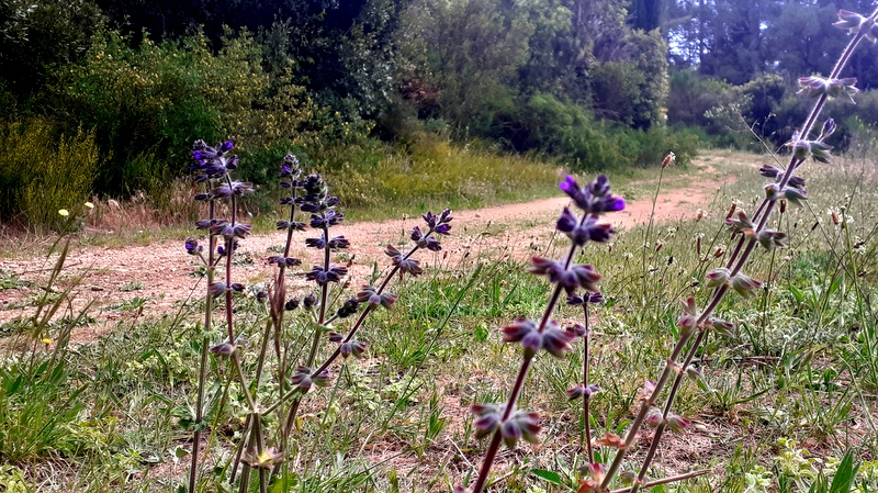 Par un jour de mai, l’une de ses journées où l’air devient subitement lourd et vous fait passer du printemps encore trop frileux à l’été sans transition – ce soir, après une semaine caniculaire où le mois de juin a battu ses records de chaleur pour la saison, ce mardi de mai aurait probablement été une promenade de santé mais alors, la brume de chaleur qui enveloppait le paysage et peut-être aussi un petit peu mon cœur, m’a totalement prise par surprise ; par ce jour de mai donc -, je décidai, avec l’une de mes compagnes de marche préférées, d’aller chevaucher la fesse de Charlemagne de nos longues et courtes pattes selon qu’on parle d’elle ou de moi, et de rencontrer Notre Dame de Carla qui surveille aveuglément le village médiéval de Lagrasse.