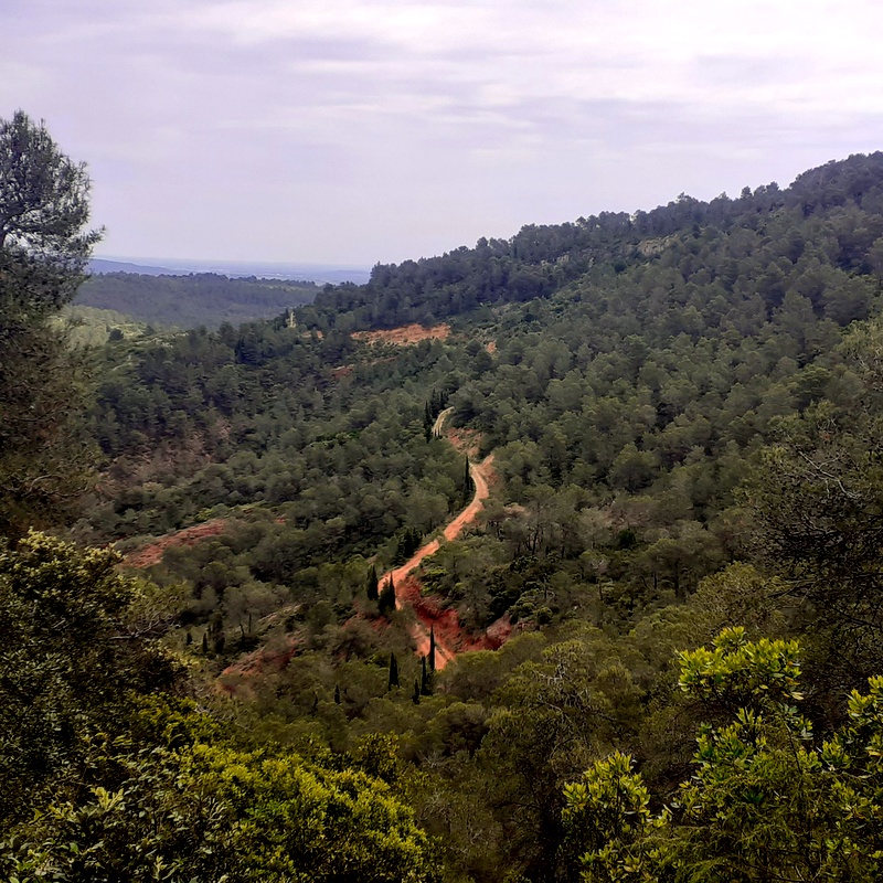 Atteindre l’intersection des cinq chemins rencontrée plus tôt (km 2.57) et emprunter la même piste qu’à l’aller jusqu’au croisement en T (km 2.18), quitter le GR® qui bifurque à gauche et continuer de descendre par la piste. Au bout de quelques dizaine de mètres, il est possible de couper les virages par un petit sentier assez pentu sur la droite, il rejoindra la piste carrossable plus bas. Par la piste, effectuer deux lacets, pour finir par descendre à flanc de colline. Durant toute la fin de la descente profiter de la vue sur le village et l’Abbaye de Lagrasse. Passer entre les cultures d’olivier et de vigne.