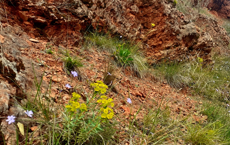 (km 1.31) Passer à proximité d’une construction en pierres sèches, le sentier se fait plus à plat et la vue s’ouvre un peu plus sur les paysages environnants. Poursuivre sur ce bon chemin encore un kilomètre.