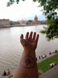 Je sors donc mon « écrit-en-ville » pour y jeter mes pensées, me délectant de mon été toulousain, savourant cette soirée ordinaire dans la ville que je connais par cœur mais à laquelle j’applique, émerveillée et libre, toutes les errances joyeuses de mes ailleurs.