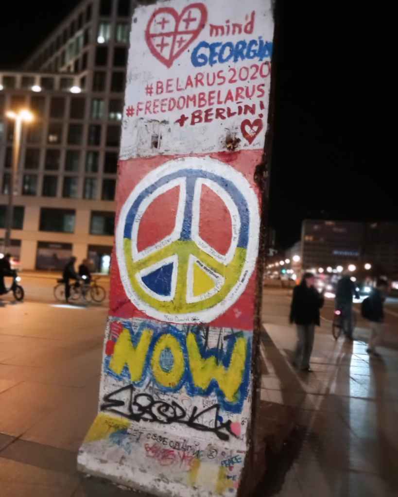 Pourquoi ici et pas au memorial où tant de gens sont morts en essayant de passer à l’Est ? Et pas à la porte de Brandebourg où la réunion a eu lieu en plein jour ? Parce que c’est ici que le mouvement du peuple a fait foi, c’est ici que la puissance du collectif demeure, c’est ici que tout commence et que tout finit, c’est ici l’espoir contre la fatalité. Un peu comme ce souvenir des familles qui se faisaient coucou à travers le mur.