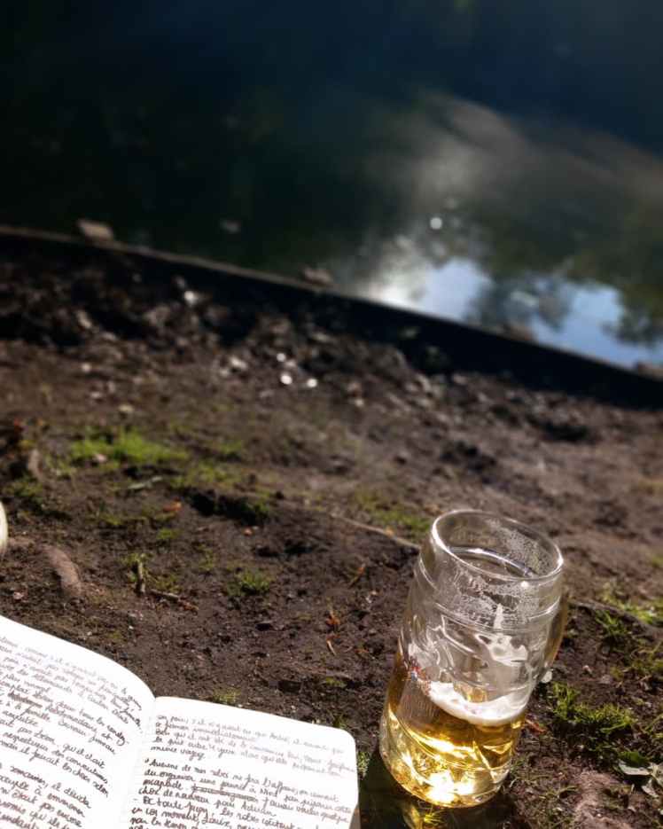 Et laisser la journée filer alors qu’enfin, au milieu de ce rien rempli de tout, je reprends mon stylo, ouvre mon carnet moleskine vierge et laisse Berlin s’imprégner pour en faire un roman. Je n’ai pas écrit « fictivement » comme ça, à la main, depuis des années, ma pensée allait trop vite pour mon stylo, ma main n’était pas assez précise pour mon roman. Et pourtant, là, en cet instant, au milieu des odeurs de barbecue, sous le soleil fleuri du printemps, ce sont des centaines de lignes qui se remplissent au fil des pages, c’est un chapitre entier qui s’inscrit. Libre. Inspiré. Affranchi. Sur sans être certain.