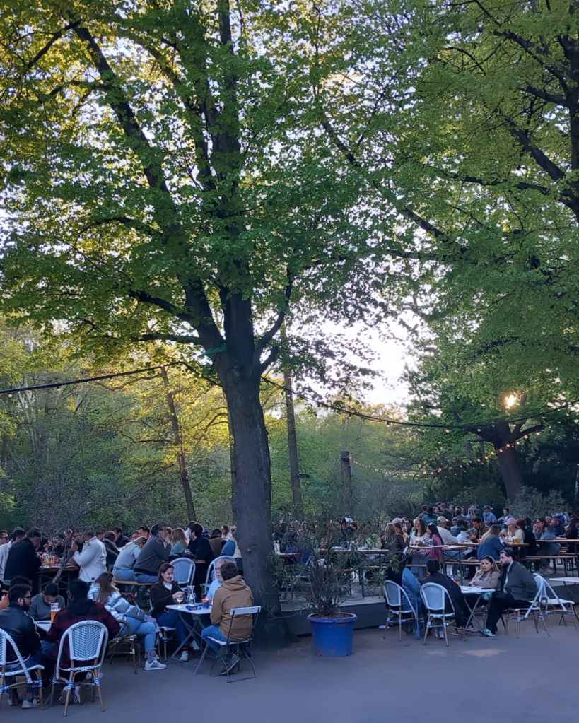 Et soudain, au milieu du silence du Tiergarten, un brouhaha humain transperce les arbres. Des tables s’allongent sous les guinguettes encore éteintes. Les gens débordent de partout pour profiter de leur samedi ensoleillé jusqu’à la lie (ou la mousse peut-être dans ce cas de figure) : entassés au bord des tables, regroupés au coin de l’étang.