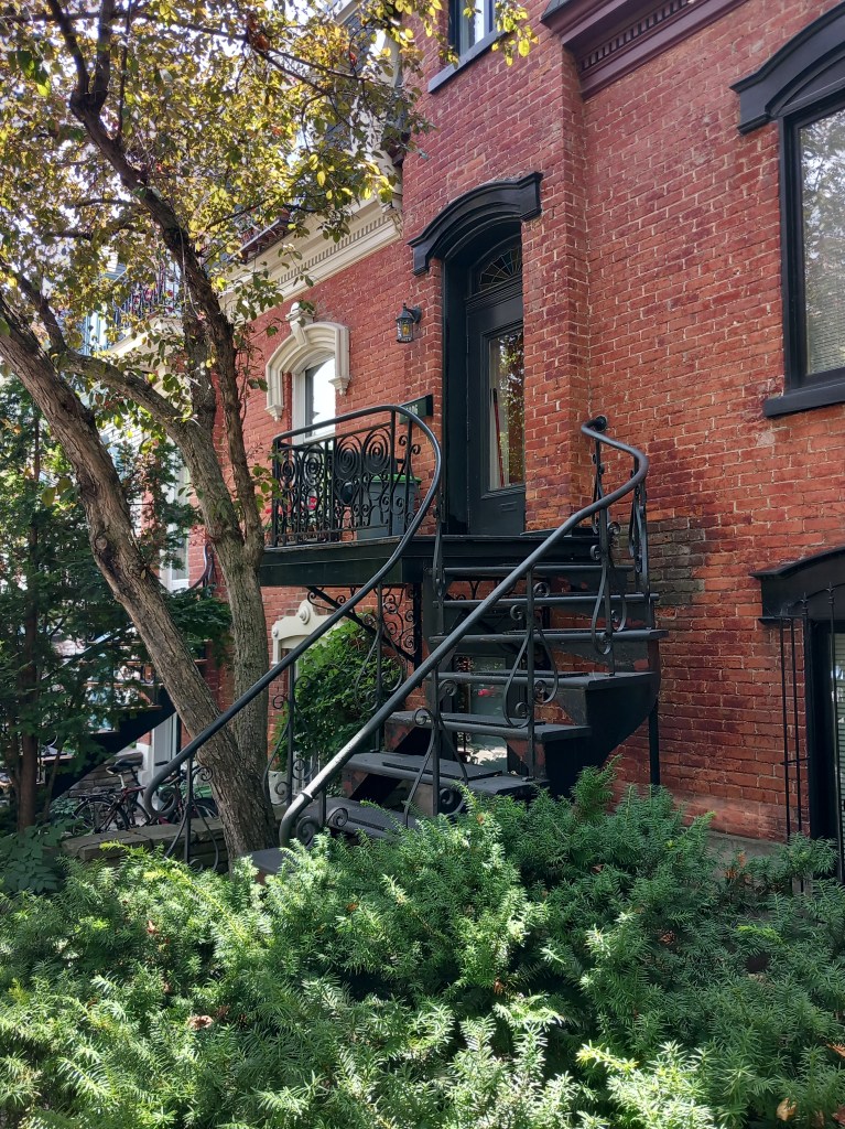 Je remets mes pas dans les miens pendant 48h. Du vieux port au plateau. Du quartier de l’université au district de Charlevoix. Je m’esbobie toujours autant des maisons à colimaçons extérieurs, fenêtre hors du temps et de l’espace. Je me rafraîchis sur les bords du Saint-laurent, seul endroit où je me sens proche du Montréal d’avant. Celui qui n’avait pas de nom. Celui qui servait de halte obligée entre les rapides. C’est ici que je me reconnecte à l’Histoire, aux temps d’avant, mon péché mignon de voyage.