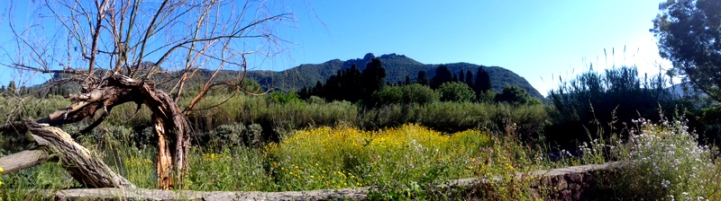 Ranimée par cette balade émerveillée, je note enfin la multiplicité des paysages sur cette si petite île au milieu de la mer. Ce fut si surprenant de passer du paysage redondant de monts emmaquisés auquel nous nous étions habituées à cette plaine marécageuse qui ressemble à la Camargue. Tout aussi incroyable que de constater que l’image contenue dans un mot varie selon les paysages : mon marécage gonflé de tourbe irlandaise est absolument différent de mon marécage sarde nourri du blé déjà presque mûr.