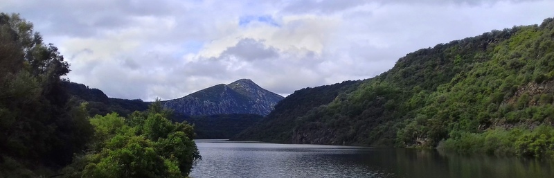 Nous prenons le petit déjeuner au miaulement du chat devant le paysage enfin dégagé pour nos yeux affamés et que nos pieds sont impatiens d’arpenter… Le corps veut profiter de ce premier matin sec et entreprend sa promenade lourde vers le Laggo del Cedrino. La nature a déjà comblé l’opacité du silence, elle fait vraiment un bruit particulier après deux jours de pluies incessante. Elle étend ses branchages alourdis d’eau, on entend toutes ses cascades et ses rivières trop remplies courir entre les roches et dévaler les hauteurs. Et surtout, les oiseaux conversent bruyamment à nouveau, les papillons volettent doucement d’un brin d’herbe à l’autre, les mouches nous poursuivent. Le soleil fait quelques percées et la terre humide a chaud trop vite, trop lourdement. Les hautes montagnes interdisent le moindre vent. On aperçoit au loin la crête calcaire blanc qui lumine dans le soleil absent et les nuages dévalent les hauteurs vert de gris comme une coulée de lave. La terre sous nos pieds est rouge, argileuse, lourde sous nos chaussures.