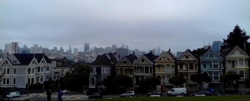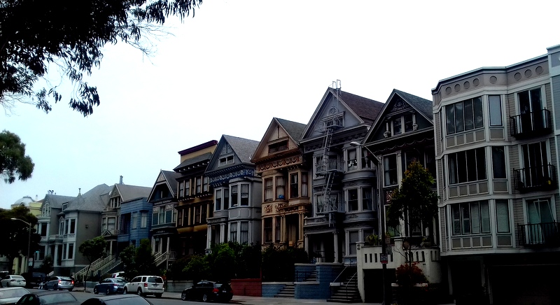 La ville se fond dans le ciel, ses contours sont absorbés par la brume, les gratte-ciels se perdent dans les nuages et la grisaille colore la ville en ce dernier matin. Et moi aussi je disparais dans ces nuées pour mes dernières explorations, je commence mon trek urbain de bonne heure par le quartier administratif, blanc et immaculé sous la pluie, sale et agonisant des sans-abris. Je respire un peu en m’éloignant de Downtown, retrouvant pour un instant trop bref une ville à visage humain. Très vite, Haigh Street m’offre les mêmes regards ravagés et absents que chaque rue de San Francisco. Je suis à Haigh-Apsburry, le quartier qui servit de décor au Summer of love de 1967, et je me demande si les rides sur les visages désincarnés signifient qu’ils n’ont jamais quitté ce coin de trottoir depuis leur arrivée ce fameux été. Mon imagination me porte loin pour me raconter leurs histoires oubliées.