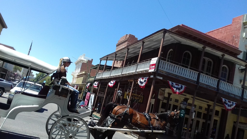 Mais ce que je trouve vraiment chouette à Sacramento, c’est qu’un tout petit bout de la ville me voyage à l’époque de la fameuse ruée. En effet, au bord de la rivière, quelques rues et bâtiments agrémentés de voies ferrées et trains à vapeur, le tout d’époque, ont été conservés et restaurés pour raconter un autre temps. Le ratio de la ville était alors d’une femme pour huit hommes : je comprends mieux pourquoi chaque western a son bordel et les seules femmes qu’on y aperçoit sont des prostituées.