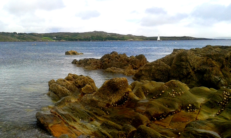 Je marche bien vingt kilomètres, sans savoir m’arrêter. Je veux longer le Lough Hyne et découvrir toujours mieux ce qui se cache derrière les hauteurs, derrière les arbres, après la mer. Et mes pieds continuent de penser pendant un temps. Après, il me faut me concentrer sur la terre, sur les monts autour de moi, verts, et parfois rocheux, et parfois roses, et parfois couverts de bruyères aiguisées. Il me faut me concentrer sur l’eau cristalline, salée et glacée du loch. Il me faut me concentrer sur l’appel de la mer invisible devant moi. Et je ne peux plus m’arrêter alors que toutes mes pensées ont déjà quitté mon corps, mes pieds inlassables veulent plus de brins d’herbes à renifler, plus de nuages à fuir. Mes muscles endoloris finissent par capituler cependant, je fais du stop pour la première fois de ma vie. Je suis touchée par l’émerveillement simple de l’homme qui me reconduit à mon abri de la nuit : « un jour sans pluie en Irlande, c’est toujours un jour de bonheur de pris. » Puis, décontenancée par ses réactions face au camion fou du 14 juillet en France : son Irlande du Sud l’a préservé des explosions entre protestants et catholiques du Nord, et il ne comprend pas que des gens se tuent au nom de la religion. Ou bien alors, son conflit irlandais contient pour lui l’idée de la Nation plus que de la religion. Toujours est-il que je ressens un paradoxe joyeux à entendre cette incompréhension dans la bouche d’un Irlandais.